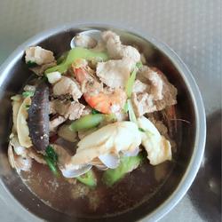 5.The filling water is 2-3 times that of fried meat! Put green peppers, clams, prawns, and sea cucumbers in it