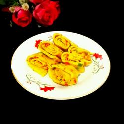 9. Cut the cake into pieces and arrange it on the plate, so that a plate of double pepper egg pancakes is enough