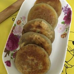 6.Put oil in the pan, add a little more, remember to turn on low heat, and cook until When both sides are golden brown, put half a bowl of water and simmer until the water dries up.