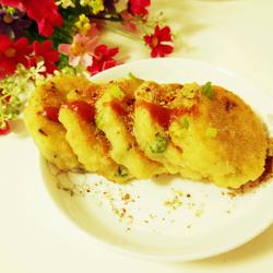 7.Put the fried pancakes on a plate, add cumin powder and chili powder, Add tomato sauce.It's so delicious, just as delicious as the ones bought from outside.
