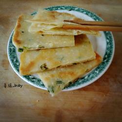 12. Fry until cooked and remove from the pan.You can smell the aroma of green onions coming to your face.Cut it with a knife and you can see the layers of dough, and then enjoy!