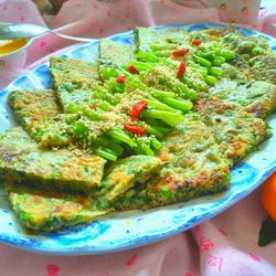 7. Fry one side over medium-low heat until the edges are plump and the cake is set.Turn over gently.Fry until both sides are golden brown and the cake is puffed up without any charring.