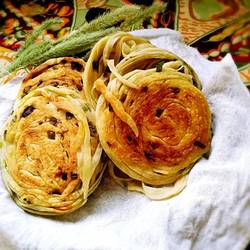 7. Then brush with a little oil, sprinkle with salt, thirteen incense, and finally sprinkle with chopped green onion