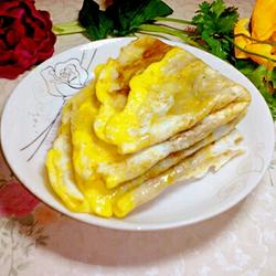 4. Add appropriate amount of water, salt and baking powder to the flour and stir into a thin paste.Let it rise for ten minutes.Pour a small spoonful into the heated pan and spread it out (lower heat)