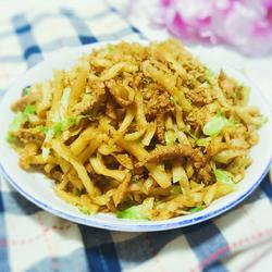 7. Wait until the vegetables are cooked, then add shredded pancakes and stir-fry.