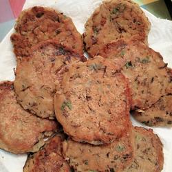 6. Use your gloved hands to make a round shape, put it in and fry it over medium heat