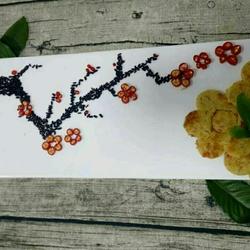 5. Black rice is arranged into tree branches.