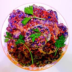 6. Heat the pan, add a little oil, add the batter with a spoon, and turn it back and forth after forming 2, take out of the pot when cooked.