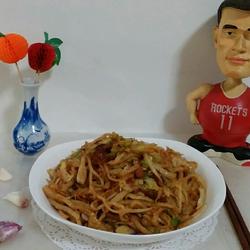 7.Add shredded cabbage, stir-fry, and season with salt.