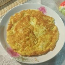 8. Hold the pot with one hand, hold the plate with the other, and turn it over.The egg pancake is on the plate.