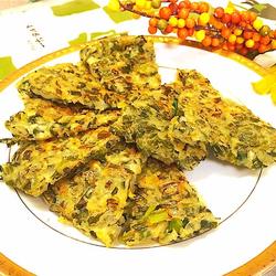 6.Pour the leek batter into the pot, then use a spatula to spread the batter evenly and level it, fry slowly over low heat, turn over when the bottom of the batter starts to turn white, continue frying, and fry for a few more minutes until the water is dry.That's it.