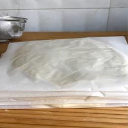 2. Spread a thin layer of dough on the cutting board and divide the dough evenly Eight portions