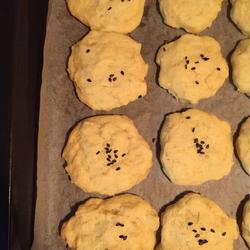9.Pull off a small lump of dough and pat it into a cake shape, then sprinkle with sesame seeds