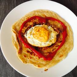 5. After placing the hand cakes, there is no need to wash the pan.After the pan is hot, put the hot eggs in it.Fry slowly over high heat to make beautiful poached eggs