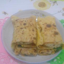 7.Gently smooth it with a scraper.Pour in the egg liquid and spread evenly.After frying one side, fry the other side.
