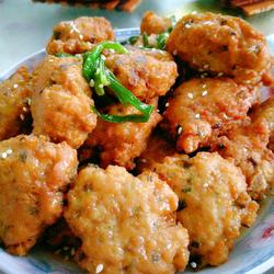6. After frying, leave the bottom oil in the pot, put all the fried fish balls in, add some soy sauce, oyster sauce, and season with corn starch., pour in to thicken the juice, finish the sauce, arrange on the plate and sprinkle with sesame seeds and it’s OK╰(*´︶`*)╯