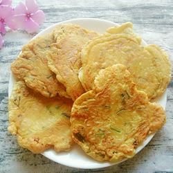 5. When there is a slightly thicker protective layer on the bottom, turn it over and press both sides with a shovel.Next, fry until both sides are golden brown, control the oil and remove.