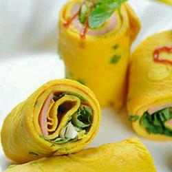 11. Fry the rolled egg pancake to the surface Just brown slightly.
