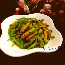 3.Sit on the pot and light the fire, add an appropriate amount of oil, add the green pepper after the oil is warm Fry the silk until it is raw.