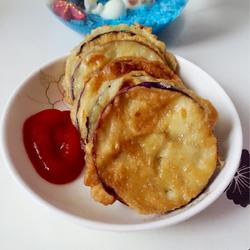 4.Put the eggplant into the batter.Stick the batter evenly