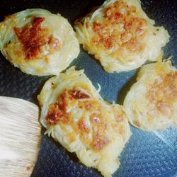 9.When both sides turn light yellow, you can turn up the heat and fry (it's faster).Fry both sides until golden, and you're done.
