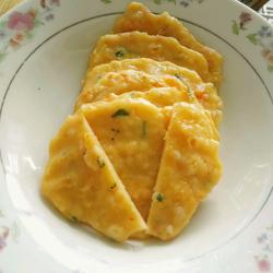 3. Apply oil with both hands, press the shrimp paste into a cake shape and put it into the pot.