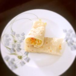 14. According to your own taste, put chili oil, sweet noodle sauce and vegetables into the burrito.