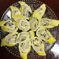 3.Put it on the stall Spread 4/3 mixed meat and black fungus on the good egg skin