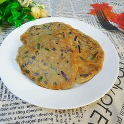 7.Put a little oil into the pan and fry the eggplant batter by the spoonful