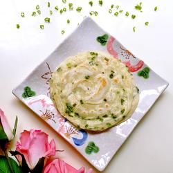 5. Spread the chopped green onion on the dough, use a knife to cut thin strips in the middle of the dough, do not cut off the two ends