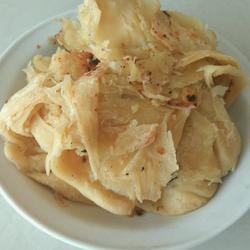 12.Change to low heat and turn over after three minutes.When the pot is dry, add an appropriate amount of oil.While the cake is being baked, use a shovel to shake the cake up and down, so that the cake will have layers after it is cooked.