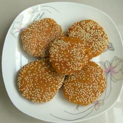 4.Pull one piece from the dough Take small pieces and shape into round shape with your palms.Dip both sides evenly with sesame seeds.