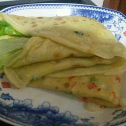 2.Put flour, chopped green onion, eggs, sugar, salt, and appropriate amount of water in a large bowl.Mix well.