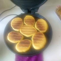 The pancake must be thin, otherwise it will not expand when pressed with the electric pan and will be very hard.You can also steam it in a steamer and eat it directly after it comes out of the pan.Put the flat surface into the pot and bake it