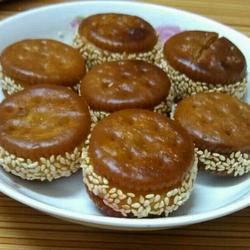 3. Complete the cake in step 2 and turn it around in the sesame seeds to make the glutinous rice flour dough even.Coated with sesame seeds.