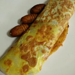 2. Spread a large spoonful of batter into a cake and beat an egg on top.