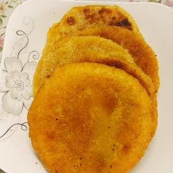 7.Put a little oil in the pot, put the cake in the pot, and burn it on low heat Turn over until brown and brown the other side