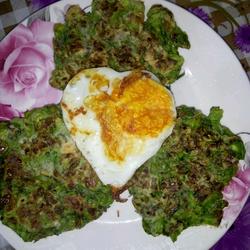 4.When one side is golden, use a spatula to fry the other side, and I put a fried egg in the middle
