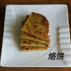 6. Pour in half of the mixed potato shreds, adjust the heat appropriately, and fry until both sides are golden and mature.!