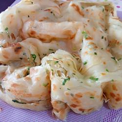 5. Make a rectangular shape and spread it with pastry and scallion oil.