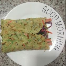 7. Preheat the electric baking pan and brush it with oil, and slowly pour the vegetable batter into the electric baking pan.Fry on both sides (flatten with a silicone spatula)