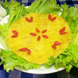 6. Cook the pancake, place lettuce on the plate, put the pancake on top, and garnish with wolfberries.Take photos