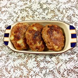 4. Divide the meat into three meat dumplings and press gently with your hands to form a hamburger embryo shape.Add a little oil to the bottom of the hot pot and put Add hamburger patties