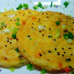 7.In Figure 6, add black sesame seeds, do not stir, let the sesame seeds stay on the surface, and the pancakes will look good