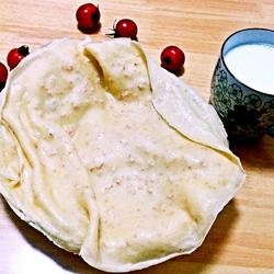 2.Put a little oil in the pot.Pour appropriate amount of batter and spread into dough.