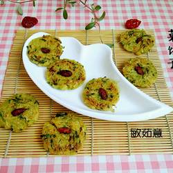 7. Heat oil in an electric baking pan, add small pancakes, with the wolfberry side facing down.