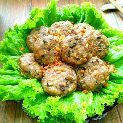 6. Place a piece of greaseproof paper on the baking sheet, knead the mixed meat filling into a ball, and place it on Flatten into a cake shape and place on a baking sheet.