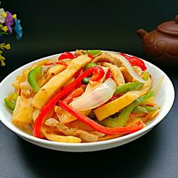 2. Shred the pork, separate the fat and lean ones, chop the onions, ginger and garlic, and chop the green and red peppers.strip.