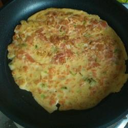 3.Put a little oil in the pot and spread the eggs into the pot evenly