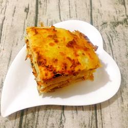 6. Spread the meat filling, cut the dough from the middle with a knife, and then fold the dough